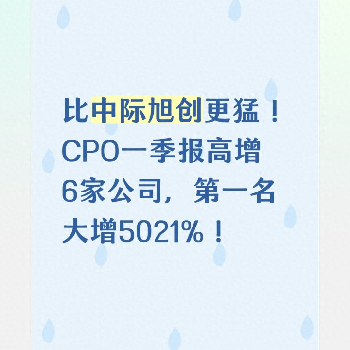 通俗说:中际旭创是CPO赛谈的“定海神针”,功绩稳、细则性强;6家高增公司是“弹性前卫”,增速猛、爆发力强。