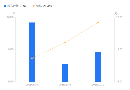 日历A股户数(户)流畅A股户均捏股数(股)户均捏股市值(万元)2026-03-31786713728.2329.322025-09-30708715239.1728.762025-06-30968911146.6618.862025-03-31957911274.6618.332024-12-31143287537.6917.622024-09-30802713454.5918.392024-06-30822713127.5114.582024-03-3189705647.917.562023-12-3192155497.7410.062023-09-3086755839.9711.27