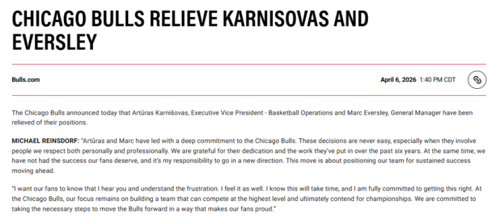 公牛队首席执行官兼总裁迈克尔-雷恩斯多夫发表声明称:“阿尔图拉斯和马克经久用心插足、倾力携带芝加哥公牛队。作念出这么的决定从来齐拦阻易,尤其是触及到咱们在个东说念主和作事层面齐异常垂青的东说念主。咱们丹心感谢他们当年六年来的付出与奉献。但与此同期,球队未能拿出球迷们理当期待的收货,而我有包袱携带球队开启新的标的。这次东说念主事变动,旨在为球队改日的经久奏凯奠定基础。我思让球迷们知说念,我听到了你们的声息,也贯通全球的失望,我相通不教而诛。我知说念这需要时候,也会任重道远把这件事作念好。在芝加哥公牛,咱们的指标经久是打造一支能在最高水平赛场竞争、最终冲击总冠军的球队。咱们将摄取一切必要规范鼓动公牛前进,不亏负球迷的骄气与期待。”