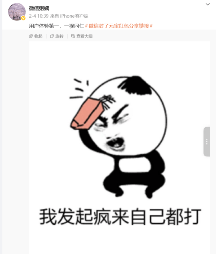 {jz:field.toptypename/}比如在聘请封杀元宝的红包畅达之后,微信也得第一时分让公关总监找回她的微博账号,把官方诠释和一张「我发起疯来连我方都打」的样子包发了出来。