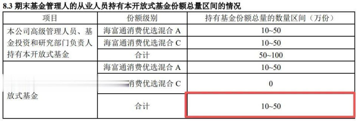 查询2025年基金中报,基金司理本东谈主执有份额在10-50万份。