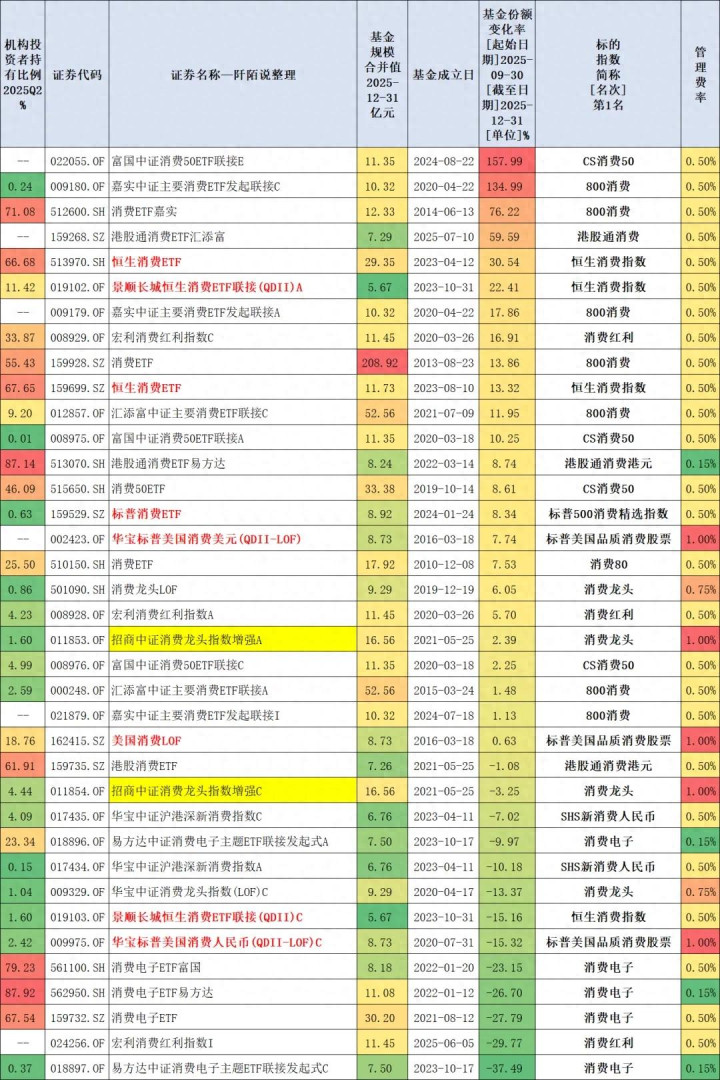 2025年四季度被增执较多的是富国中证耗尽50ETF连合E、嘉实中证主要耗尽ETF发起连合C、耗尽ETF嘉实等等。